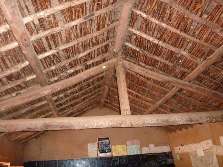 Nous sommes allés sur place constater l’état de l’école (date du repérage: février 2011). Il est ressorti qu’il y avait une urgence! Effectivement, le toit de l’école menace de s’écrouler. Il est fabriqué à base de tuiles, de branchages et de terre et les intempéries fragilisent gravement la structure. S’il venait à s’écrouler, les enfants seraient en danger car il s’agit du toit du bâtiment principal de l’école. Vous pouvez constater par vous-même l’état de ce dernier sur les photos qui suivent. En plus du toit, nous voudrions renforcer et rejointoyer quelques murs et repeindre les classes (peinture à la chaux), tout comme nous l’avions fait en 2009 dans l’autre école. De quoi redonner de l’éclat et de la fraicheur à l’école.