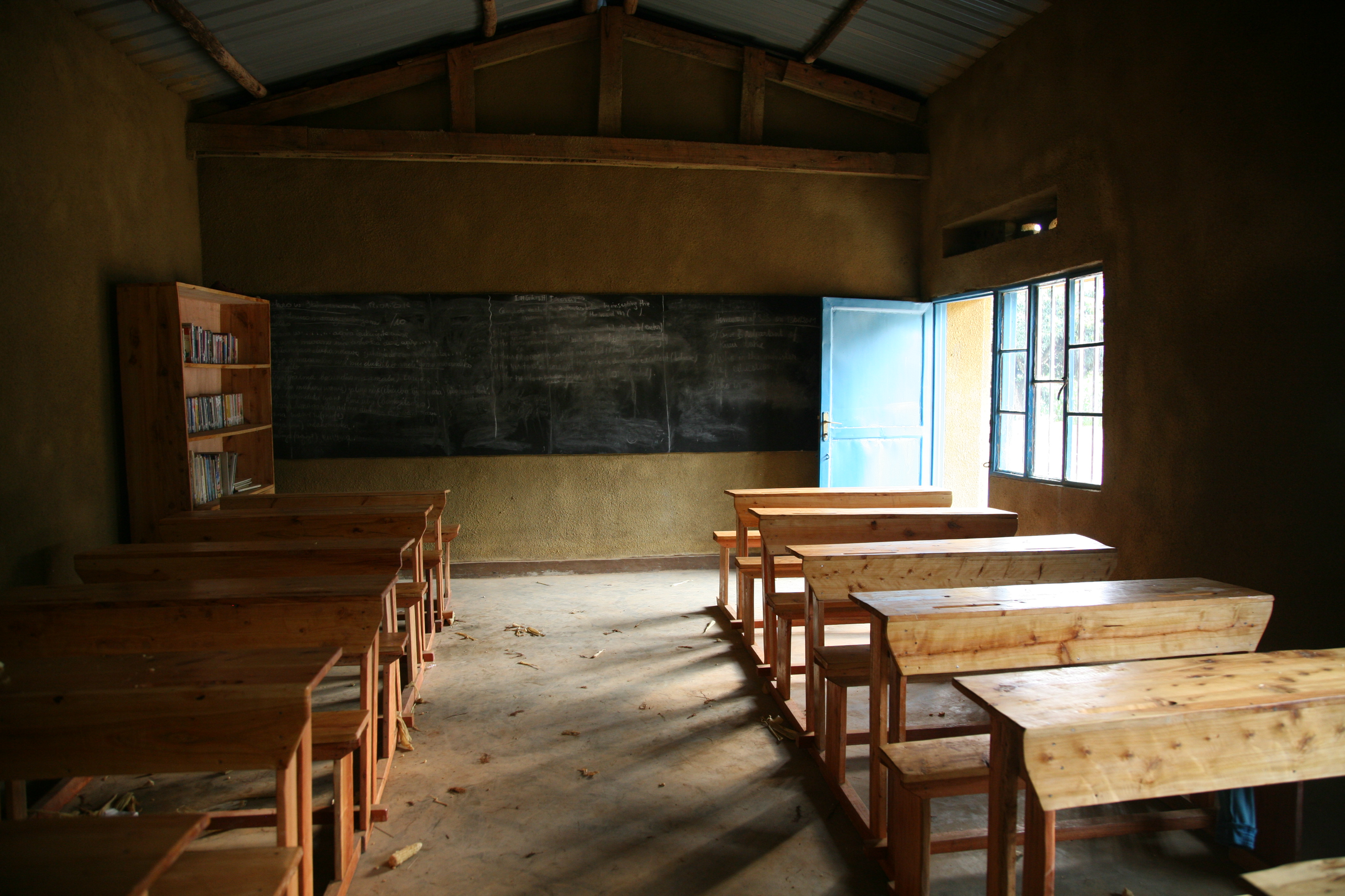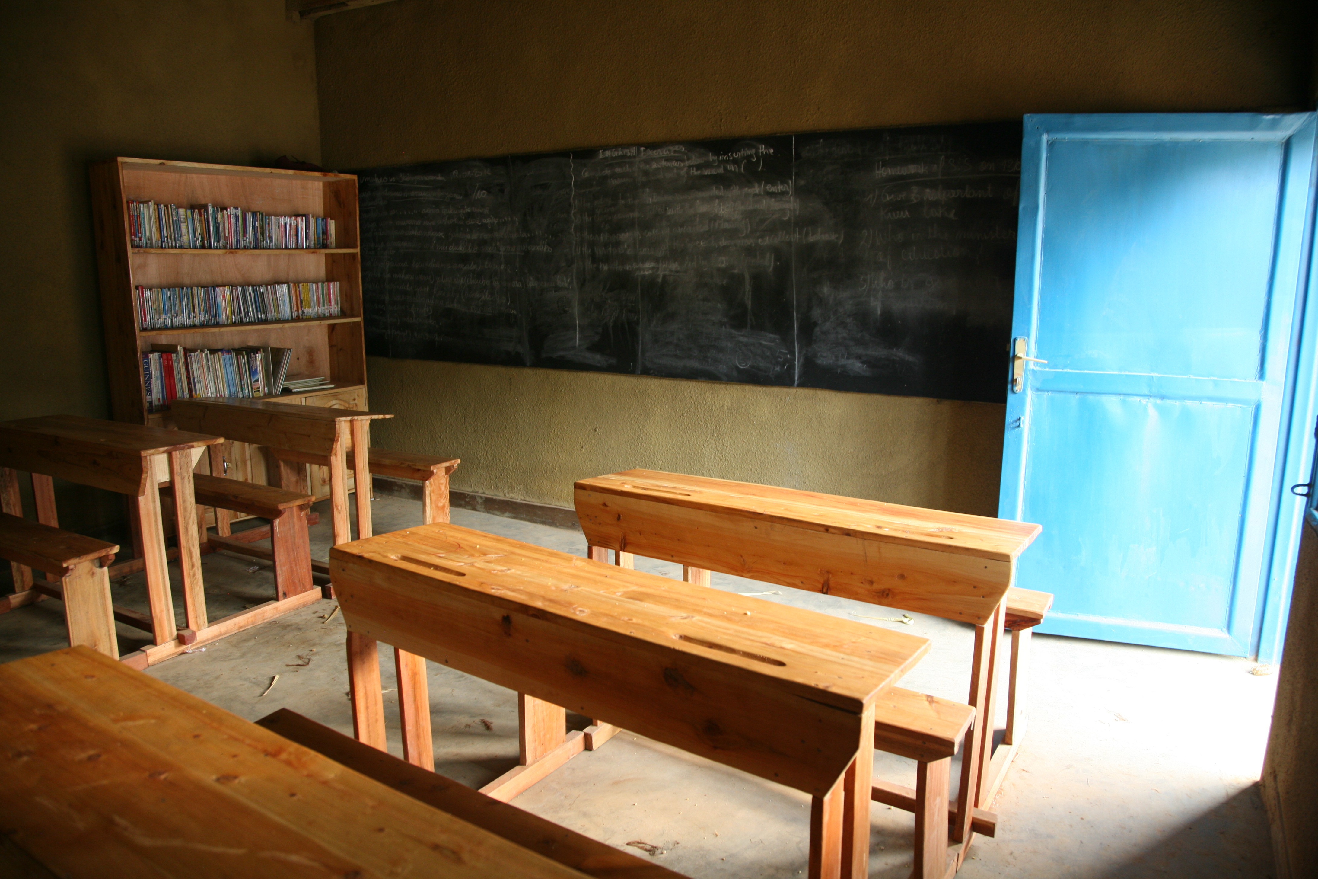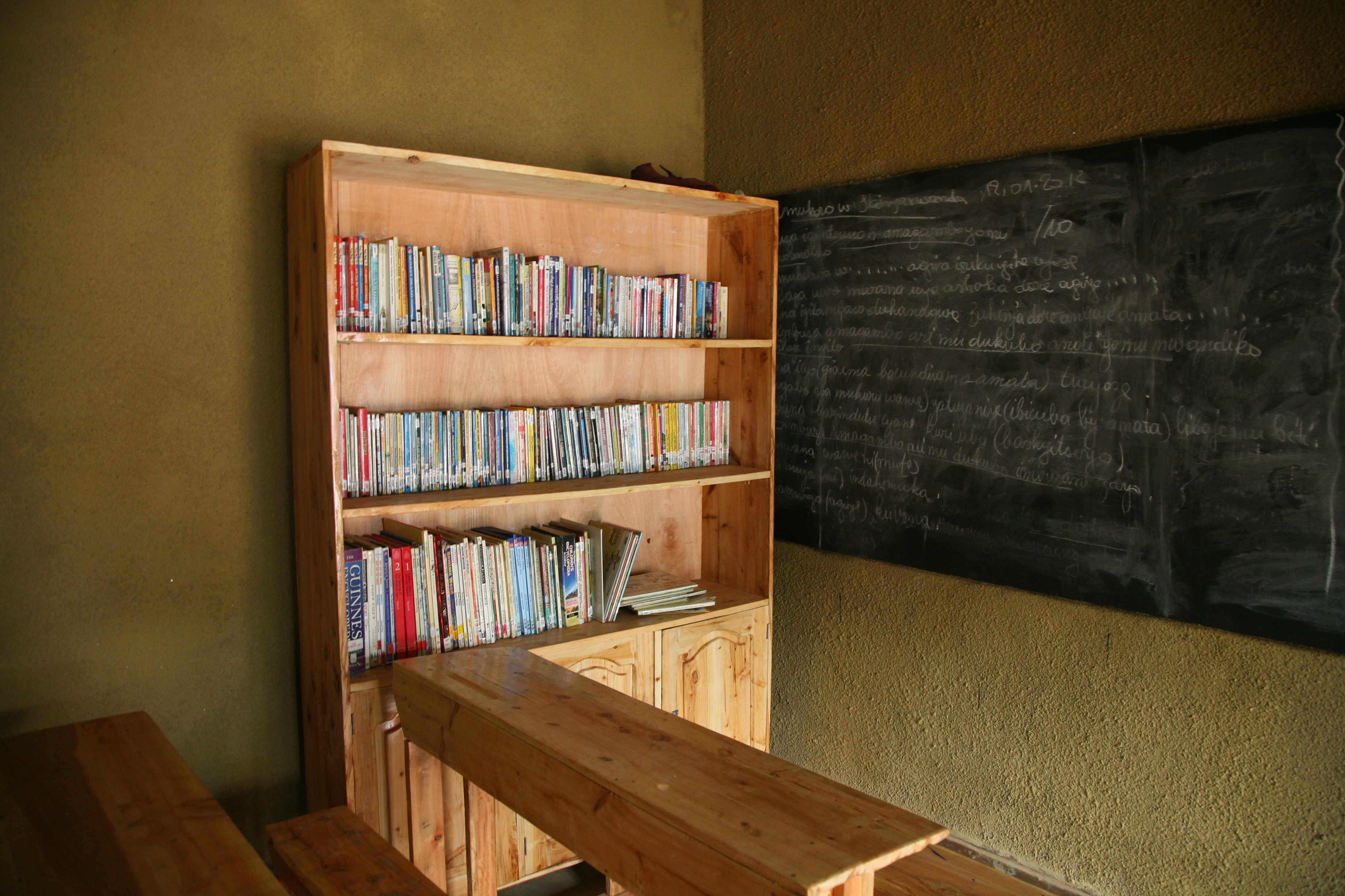A notre arrivée à Ngoma, le 18 janvier 2012, nous avons eu le bonheur de voir l’école achevée. Les travaux de rénovation sont bel et bien terminés. Quel résultat extraordinaire ! Tout est parfait. Pour optimiser ce nouveau bâtiment, nous avons fait fabriquer des meubles de rangement qui viendront accueillir les 300 livres scolaires et les nombreux jeux que nous apportons à l’école. Et comme toutes les classes ne disposaient pas de pupitres, nous en avons fait faire une quarantaine pour permettre à tous les enfants de pouvoir s’asseoir, de pouvoir dessiner ou écrire dans un certain confort élémentaire.