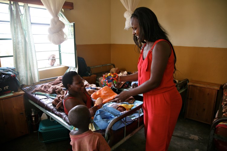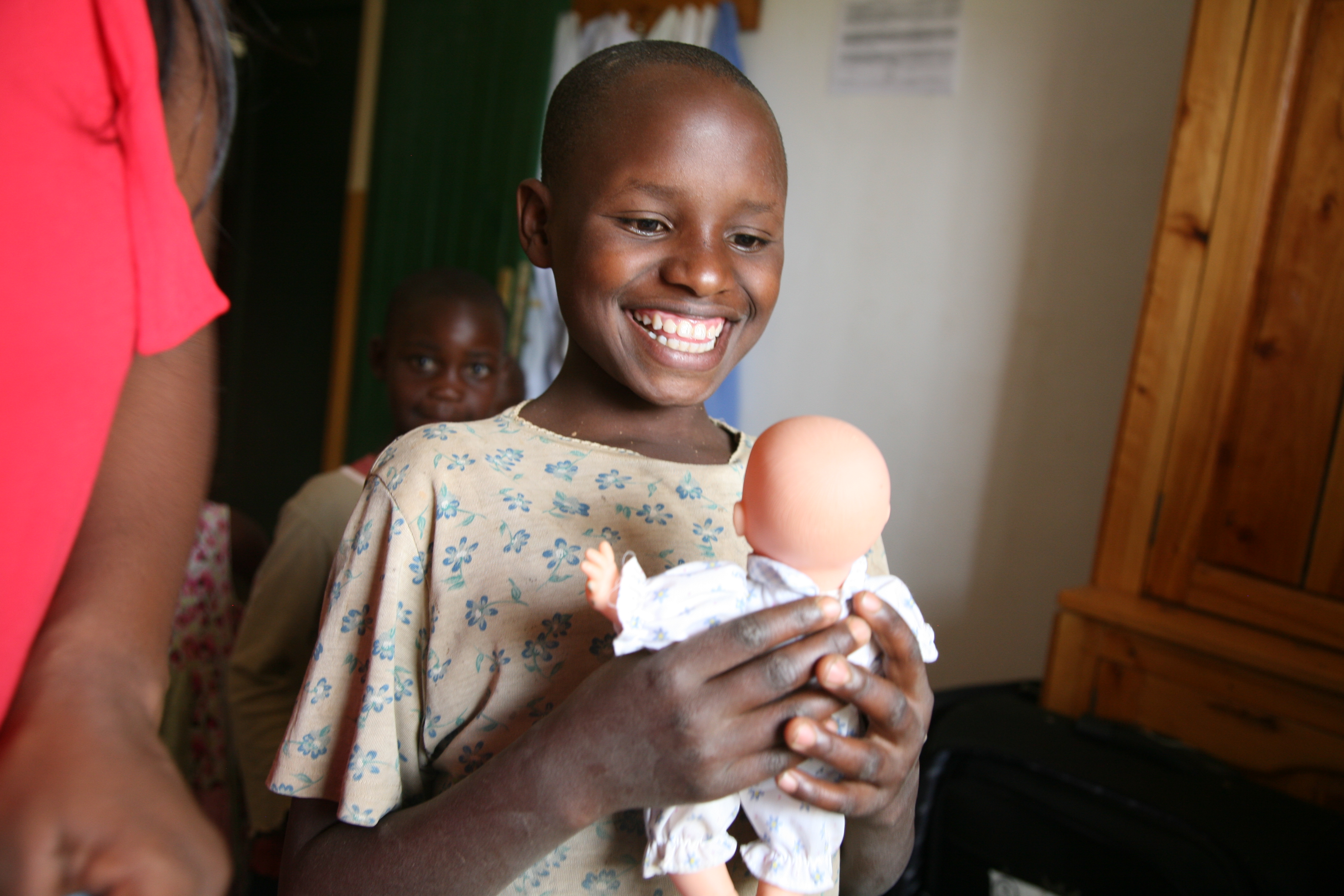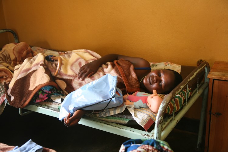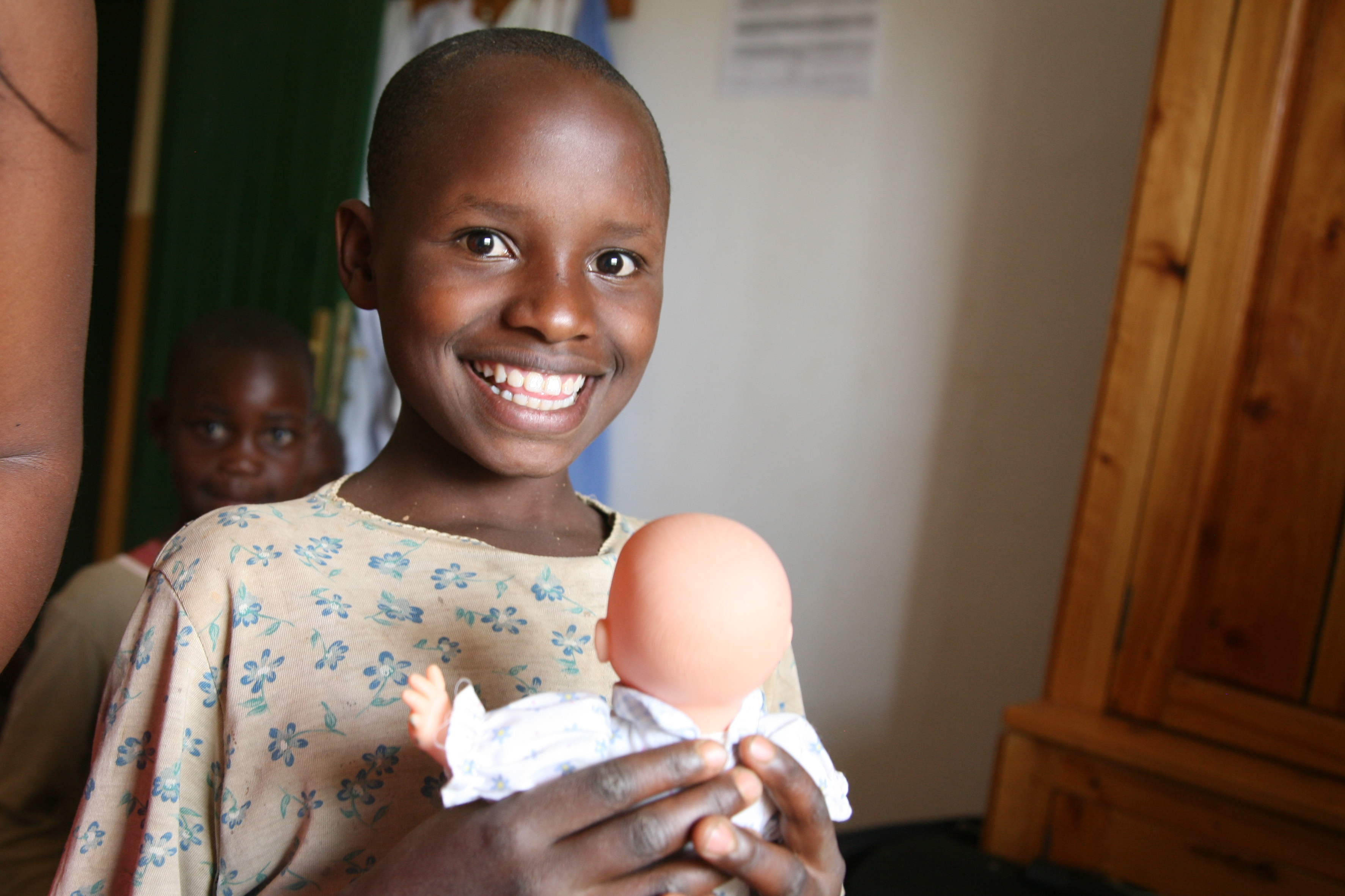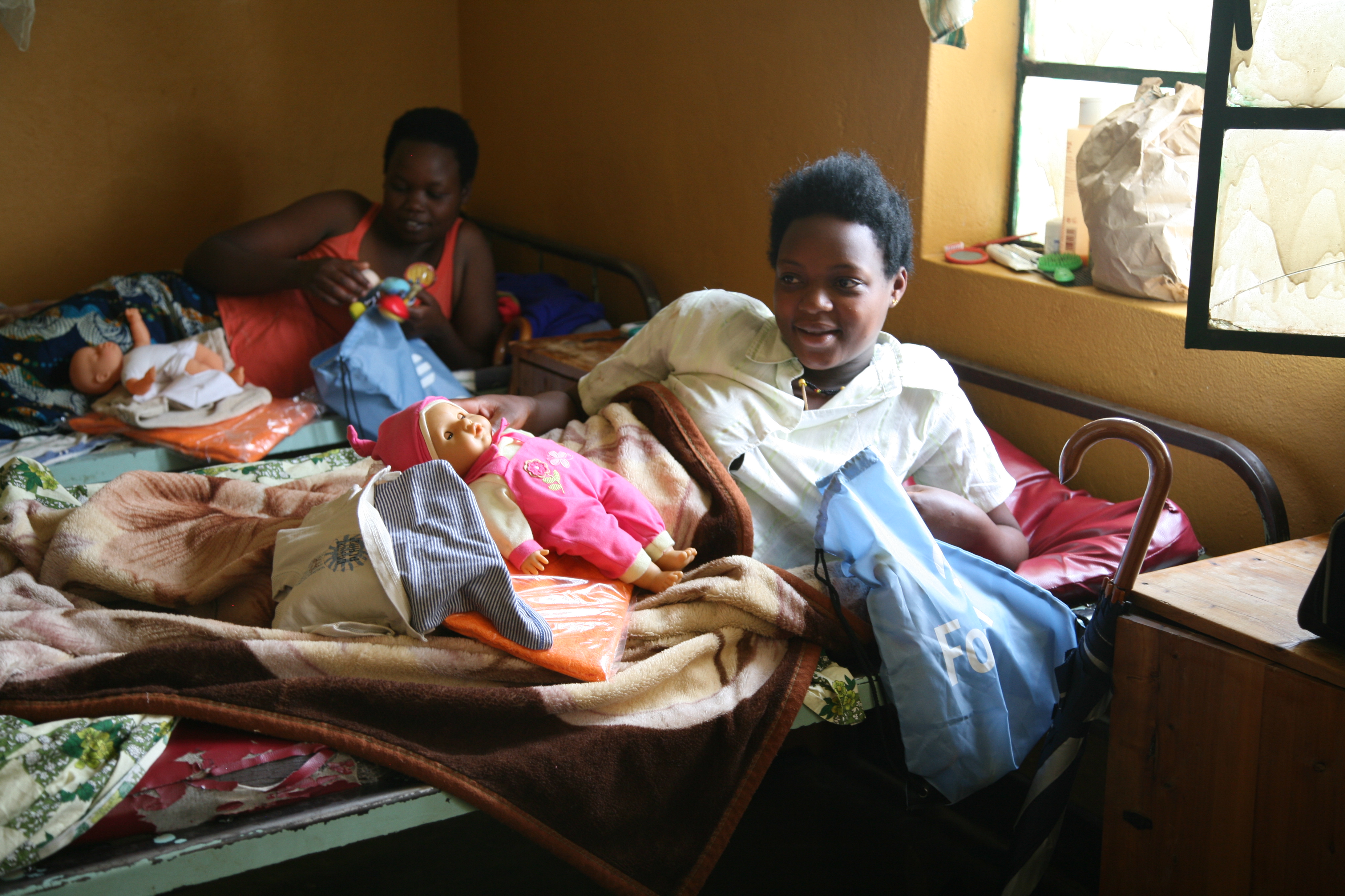 Comme en 2009, nous nous rendons au dispensaire de Ruhina, à Kiyumba (Nyabikenke) pour y donner quelques médicaments, des jouets aux enfants hospitalisés, des vêtements, des parapluies et articles sanitaires aux jeunes mères qui vont ou viennent d’accoucher. Chaque enfant peut choisir sa poupée. Ici, comme ailleurs au Rwanda, les poupées reçoivent un accueil incroyable ! Même dans la cambrousse, ce petit dispensaire reçoit les traitements adaptés et les malades de la malaria et du sida se font de plus en plus rares. La salle d’accouchement a été un peu modernisée mais reste rudimentaire par rapport à nos hôpitaux confortables !