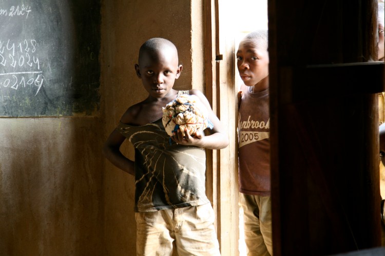 Nous faisons une escale pour visiter le Centre Scolaire de Kiyumba, non loin de Ngoma. Nous faisons un petit repérage pour une mission future. L’état de cette école, comme beaucoup de centres scolaires de la région, est similaire à celui de l’école de Ngoma avant notre intervention. Les matériaux utilisés pour la construction sont rudimentaires et les intempéries fragilisent sévèrement la structure de l’école…