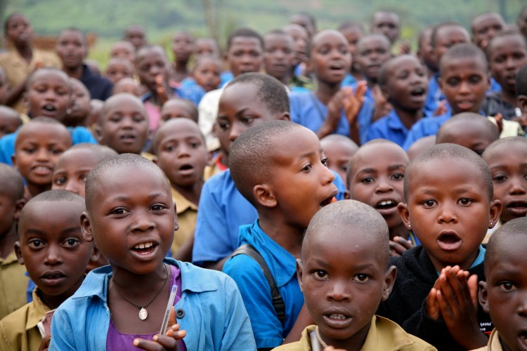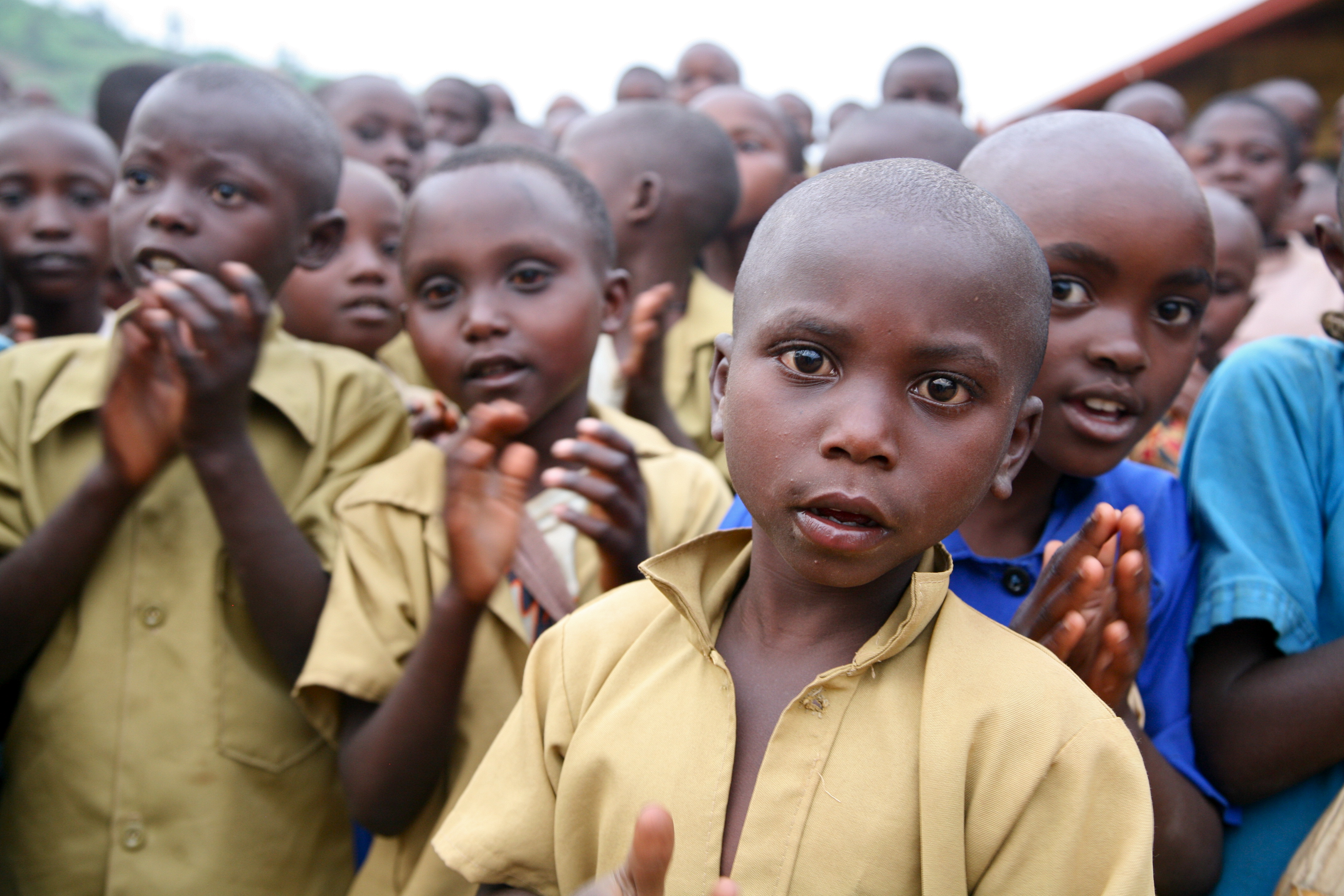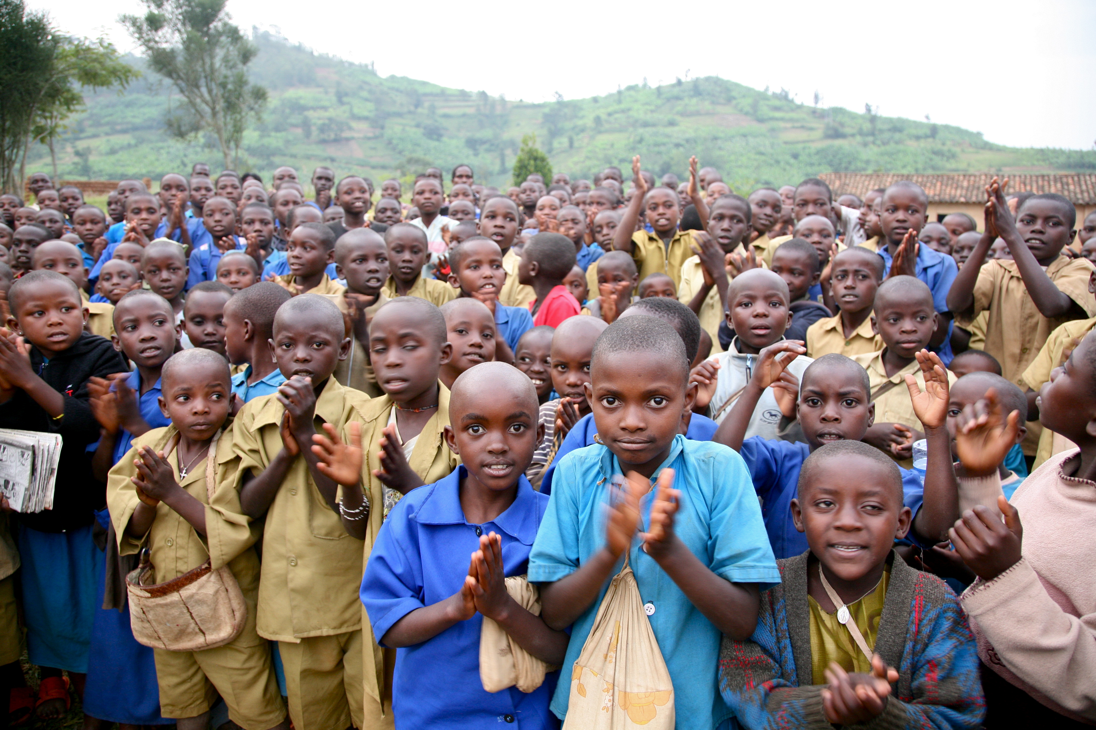 Après de longues heures d’attente et de pourparlers passées à la douane pour dédouaner le matériel scolaire acheminé par DHL, nous quittons enfin Kigali pour nous rendre à la campagne, direction Gitarama jusqu’à l’école primaire de Ngoma. Nous sommes en hiver avec une température de près de 30°C, juste après la saison des pluies. Le paysage verdoyant est fabuleux ! Nous roulons à travers les vallées fréquemment couvertes de bananeraies, de parcelles de culture de manioc, de maïs ou de café.