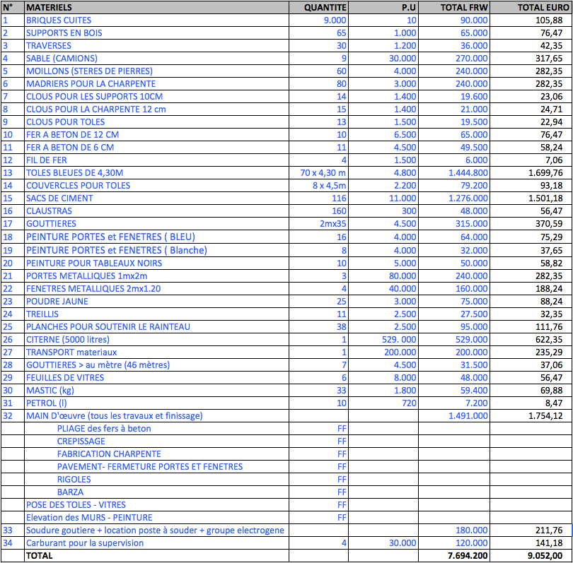 Les dons sont entièrement utilisés pour la rénovation de l’école de Ngoma.