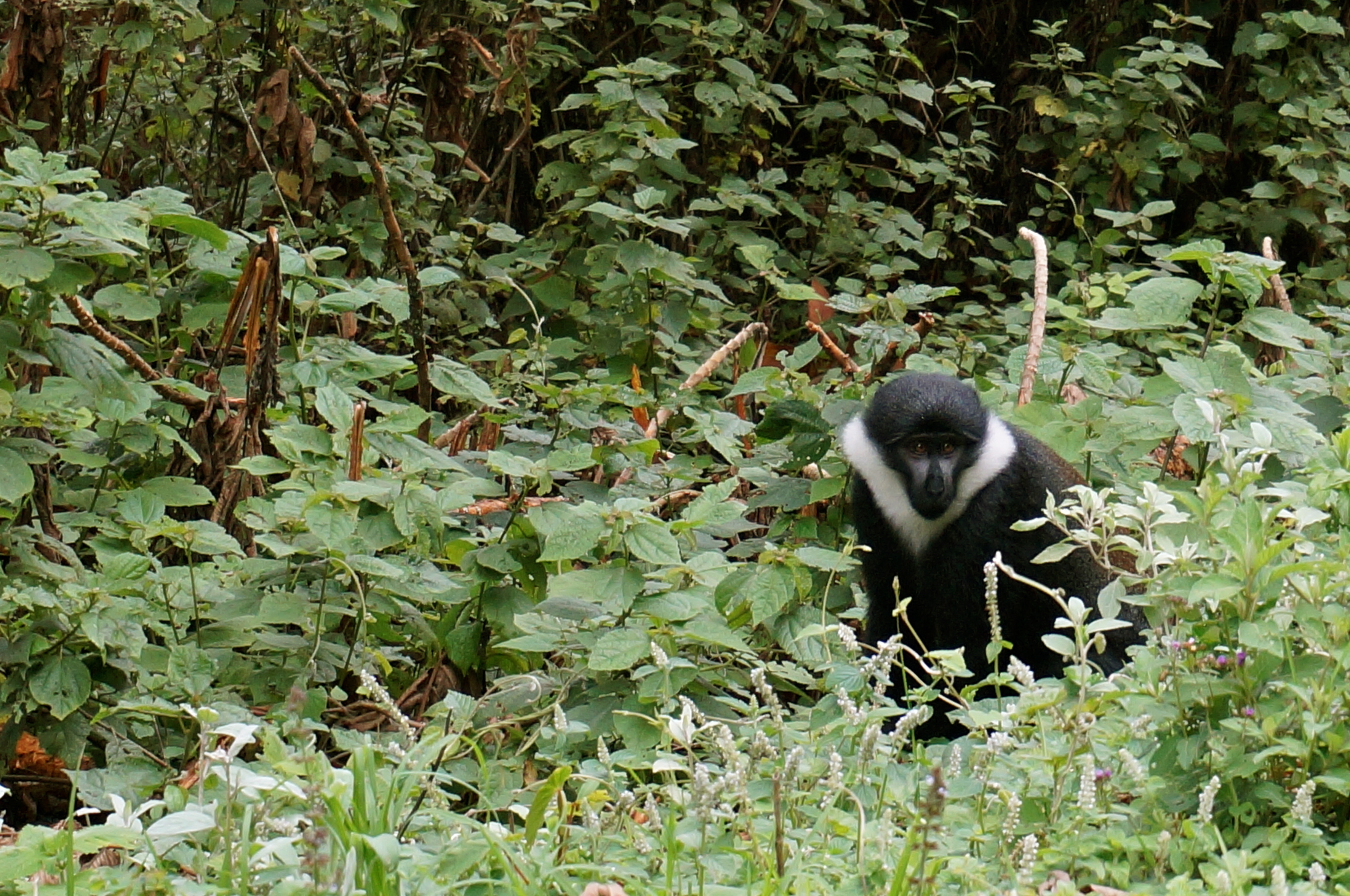 Nous terminons notre séjour au Rwanda par une petite incursion dans la foret de Nyungwe, pour y observer des singes Colombus noir et blanc. Balade super agréable, mais sous la pluie, au coeur d’une forêt tropicale magnifique. Quelques rares singes s’abritaient à la cime des arbres, juste au dessus de nos têtes. Finalement, nous en verrons plus sur la route du retour…