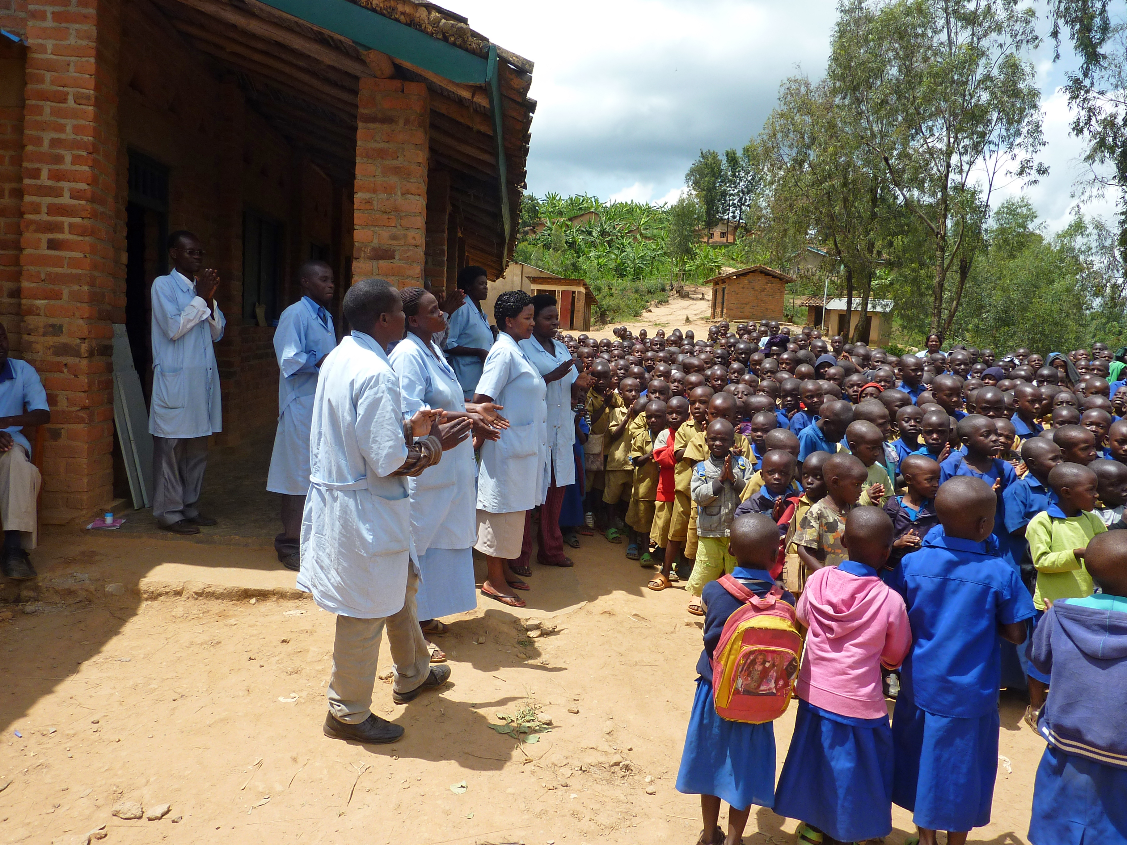 Nous allons apporter notre aide à une école primaire non loin de l’école de Ngoma, le Centre scolaire de Kiyumba. Il s’agit d’un centre scolaire qui était réparti géographiquement en 2 endroits différents. Le bâtiment des plus jeunes a été condamné et ces jeunes élèves ont rejoint leurs aînés dans l’école principale. Dans cette région, cette année, il y eu beaucoup de soleil et il n’a pas beaucoup plu. Les récoltes ont été pauvres et les familles du village souffrent de la faim. Les parents des élèves ont contribué comme ils le pouvaient pour construire 4 nouvelles classes pour accueillir ces nouveaux élèves mais les moyens n’ont pas suffit et ce bâtiment reste précaire et fragile. Ces 4 classes restent non cimentées, sans chape, sans portes ni fenêtres.