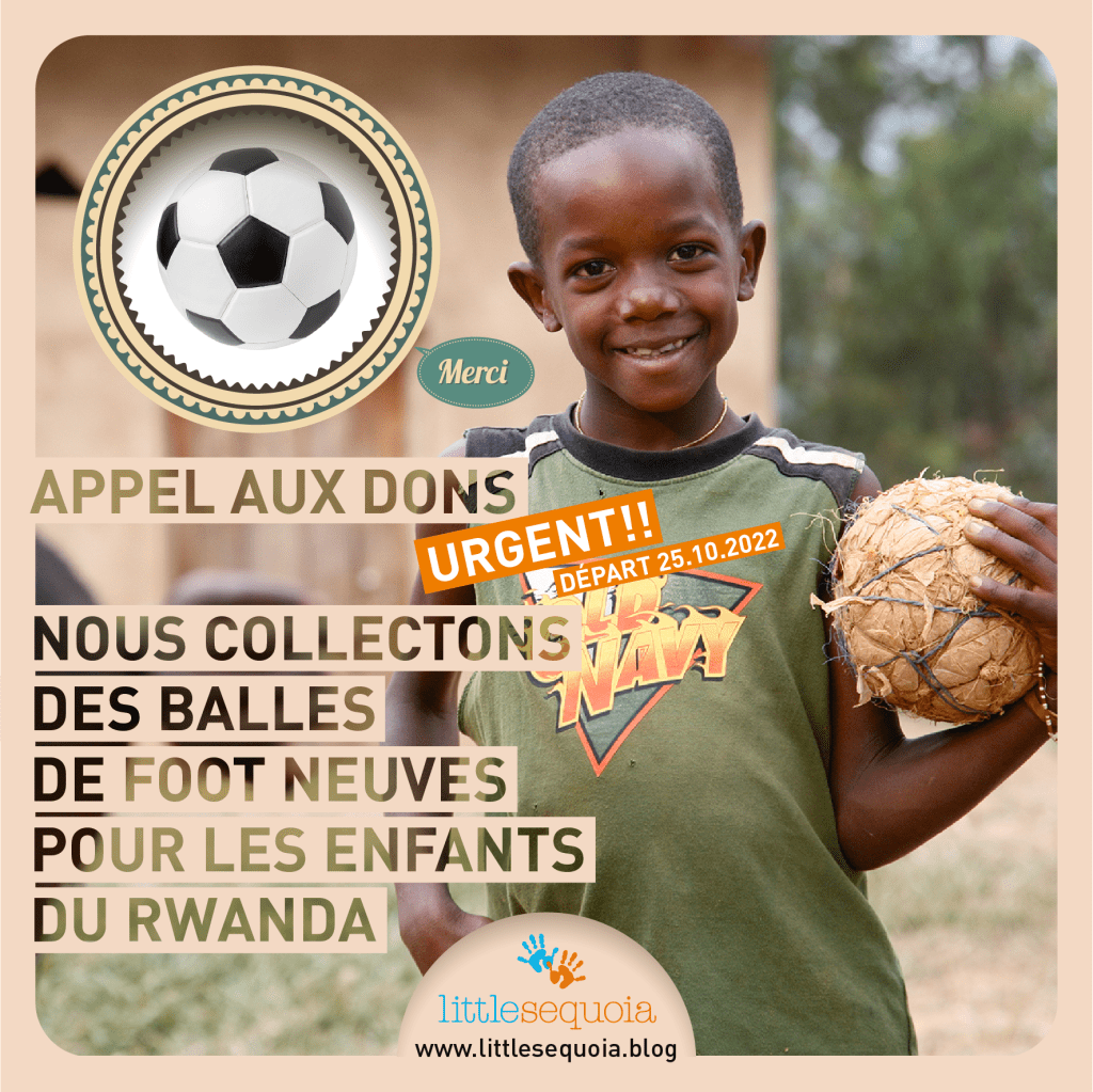 Nous collectons également des balles de foot car c’est un sport qui a une importance primordiale au Rwanda. Actuellement, les enfants jouent avec des balles confectionnées à partir de feuilles de bananiers. Comme les enfants jouent tous les jours au football, nous privilégions des ballons neufs pour qu’ils résistent le plus longtemps possible.