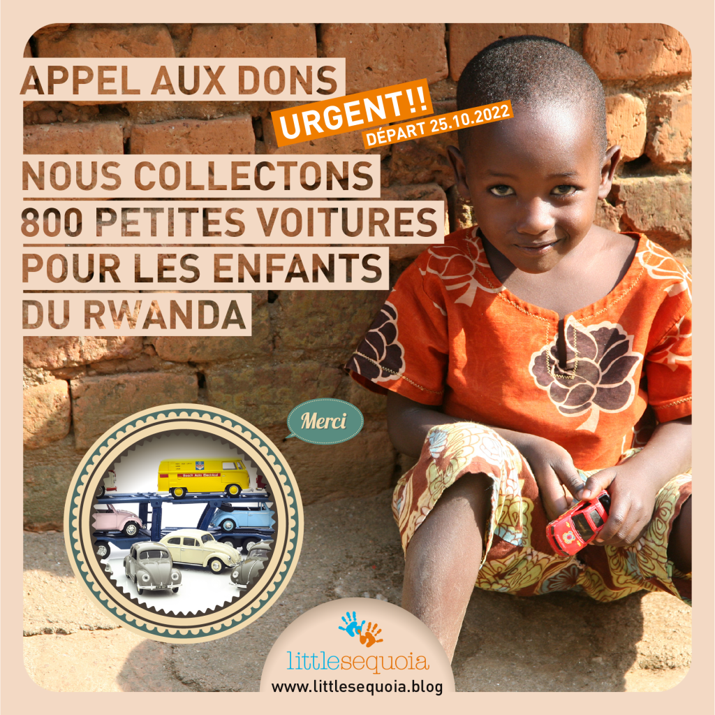 Nous collectons 800 petites voitures, en métal de préférence, pour chacun des enfants de l’école de Ndago. Les jouets sont quasiment inexistants au Rwanda et ces petites voitures donnent le sourire aux enfants, tant chez les filles que chez les garçons. L’école de Ndago est composée de 730 élèves (75 élèves en maternelle + 456 élèves en primaire + 199 élèves en technique).